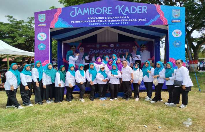 PKK Kantor Kecamatan Sungai Tabuk mengikuti rangkaian kegiatan Jambore Kader Posyandu 6 Bidang SPM dan...